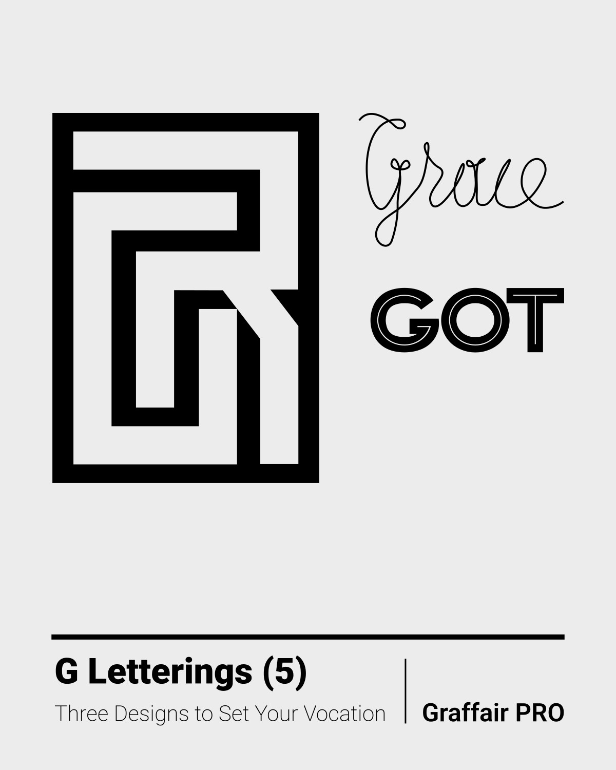 G Letterings (5): The 5th set of "G" logo/letterings includes three original designs. These letterings are part of the "800 SVG Letterings" bundle, which also contains 800 other exceptional designs.