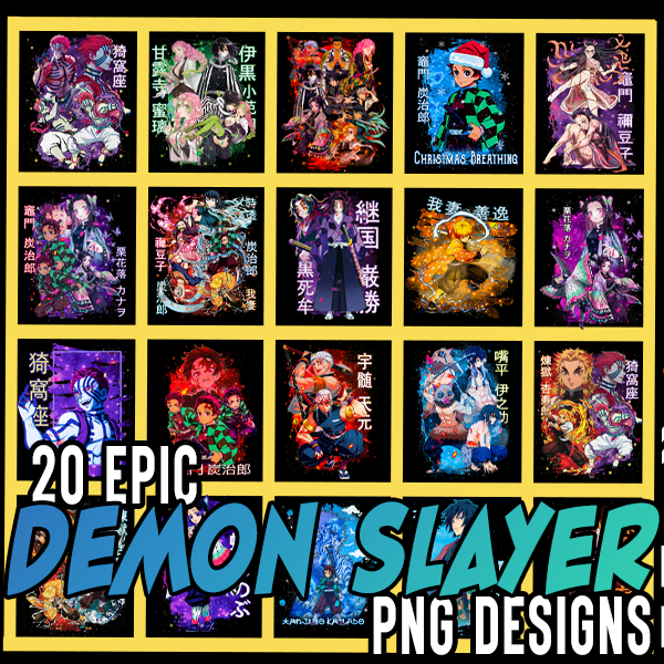 Level up your merch with 20 epic Demon Slayer PNG designs, perfect for t-shirts, hoodies, and more! Each file is RGB, ready to print, and crafted at 300 DPI for top-notch clarity. With a resolution of 5400x4500 pixels, these designs are ideal for both small and large-scale printing projects. Instantly download and start creating eye-catching products that will stand out from the rest. Whether you're an anime lover or merch creator, these designs are your ultimate toolkit!