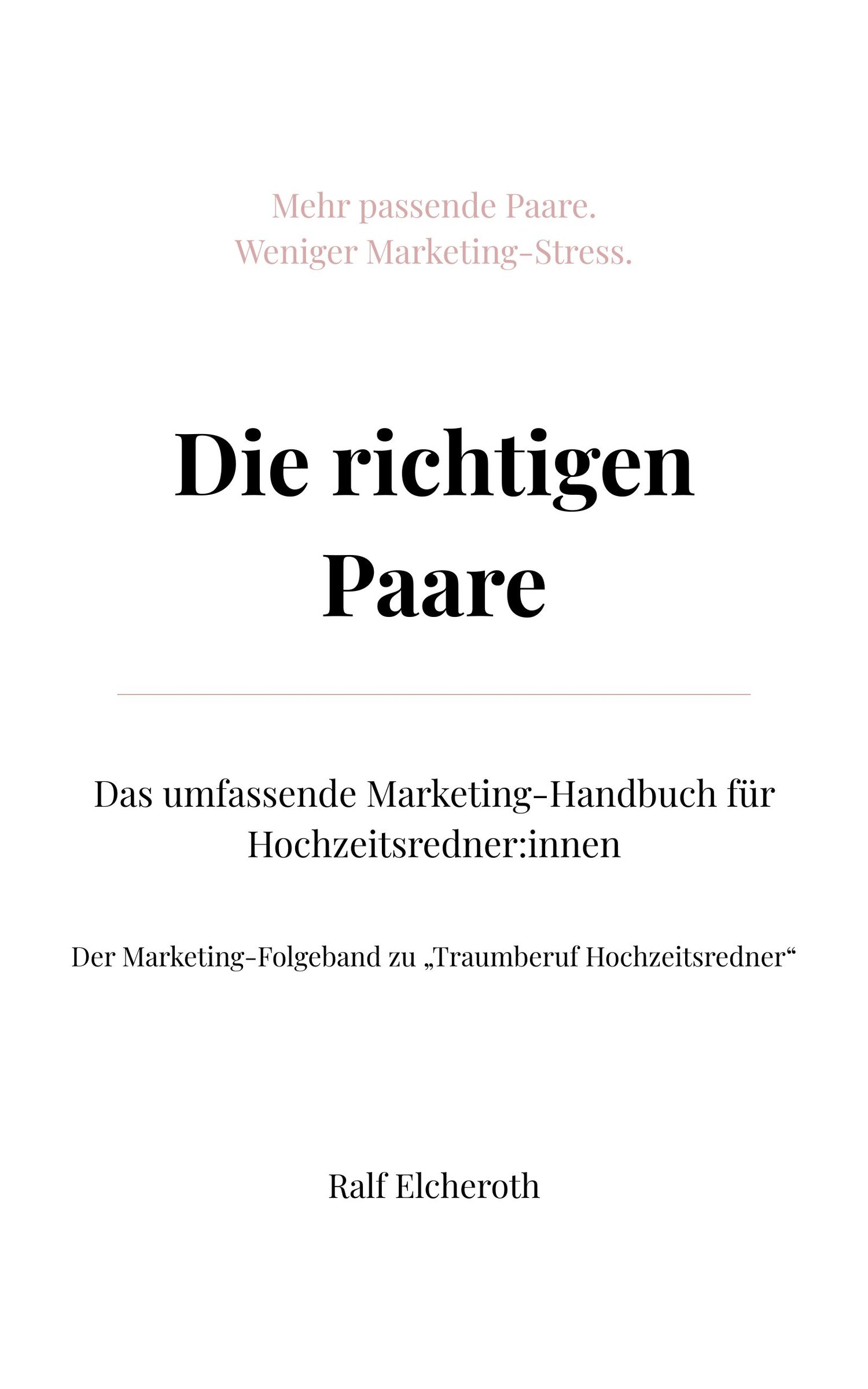 „Die richtigen Paare“ ist der Marketing-Folgeband zu „Traumberuf Hochzeitsredner“, funktioniert aber genauso gut als eigenständiges Werk.