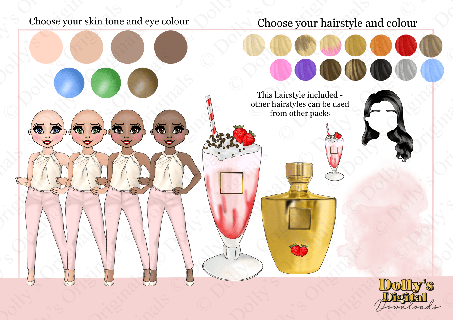 Instant digital download of our Strawberry Vodka Ice Cream Cocktail Dolly Character Bundle PNG (34 PNG’s)