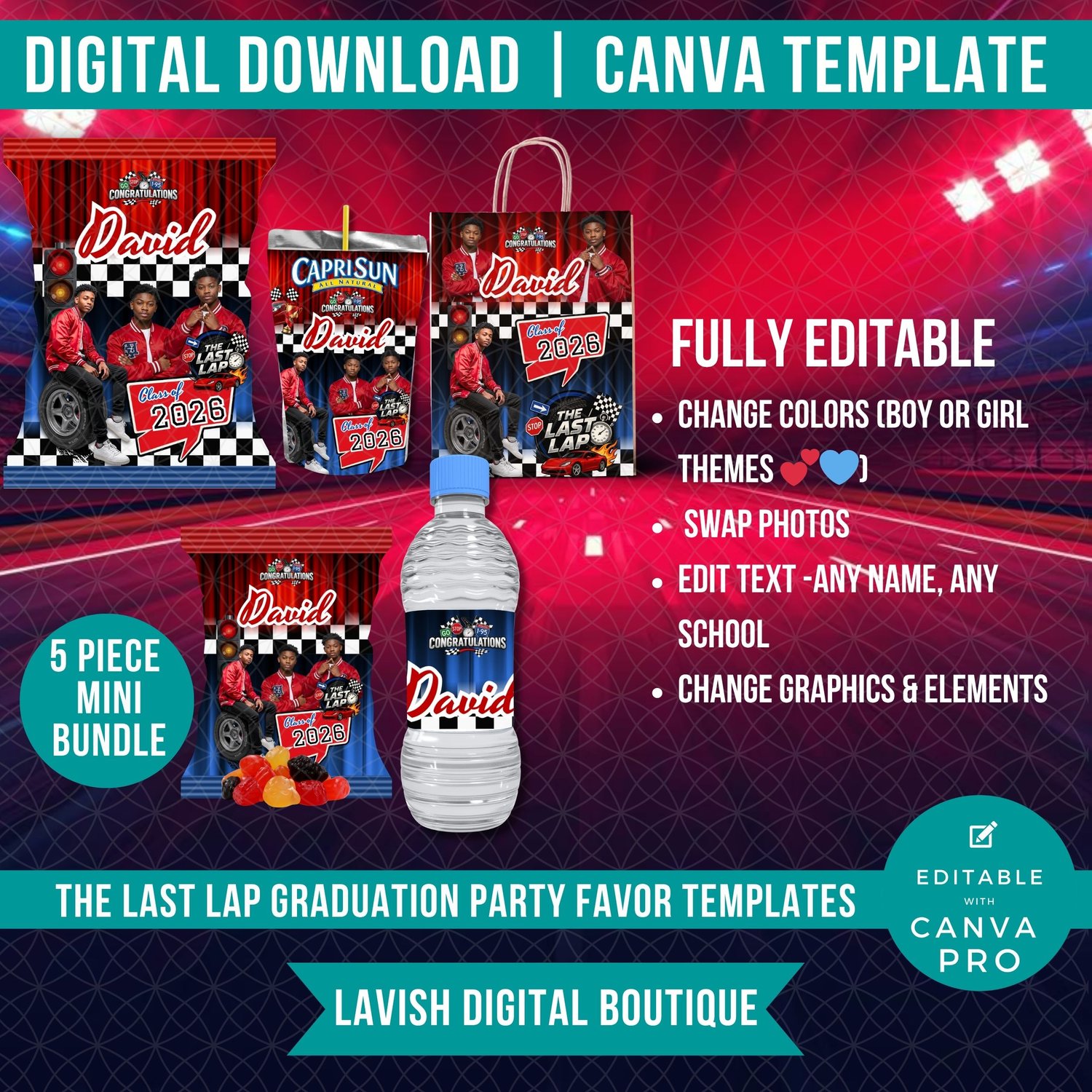Last Lap Party Favor Bundle, Final Lap, Final Quarter, Grad Printable, Graduation Template