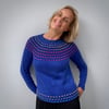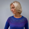 MC: Stylecraft Special DK in 1825 Lobelia (295m per 100g ball; 100% acrylic); CC: Stylecraft Wondersoft Merry Go Round in 3145 Starburst (294m per 100g ball; 100% acrylic)