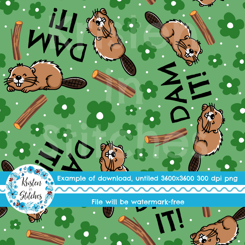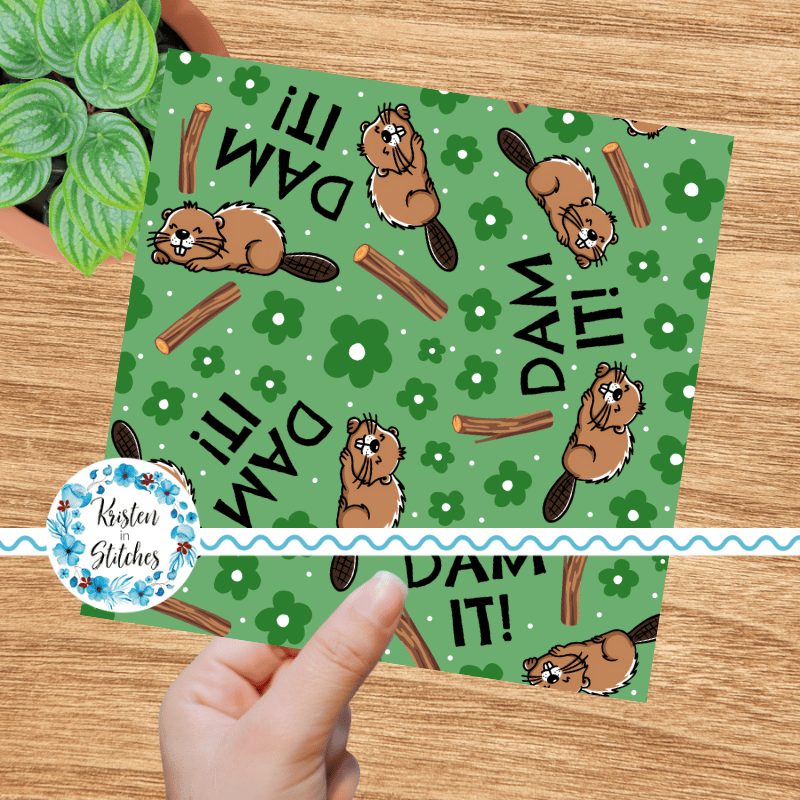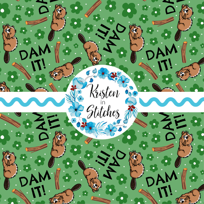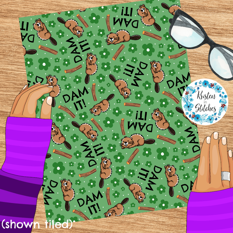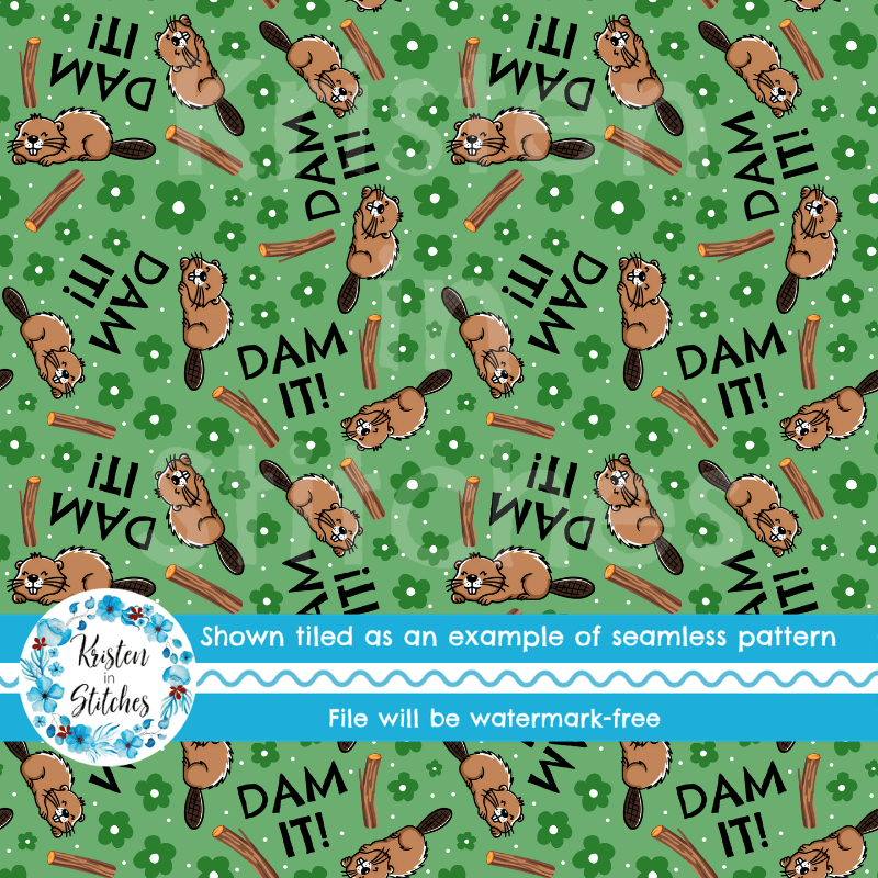 Dam It Sarcastic Beavers Seamless Pattern, Funny Animals, Green