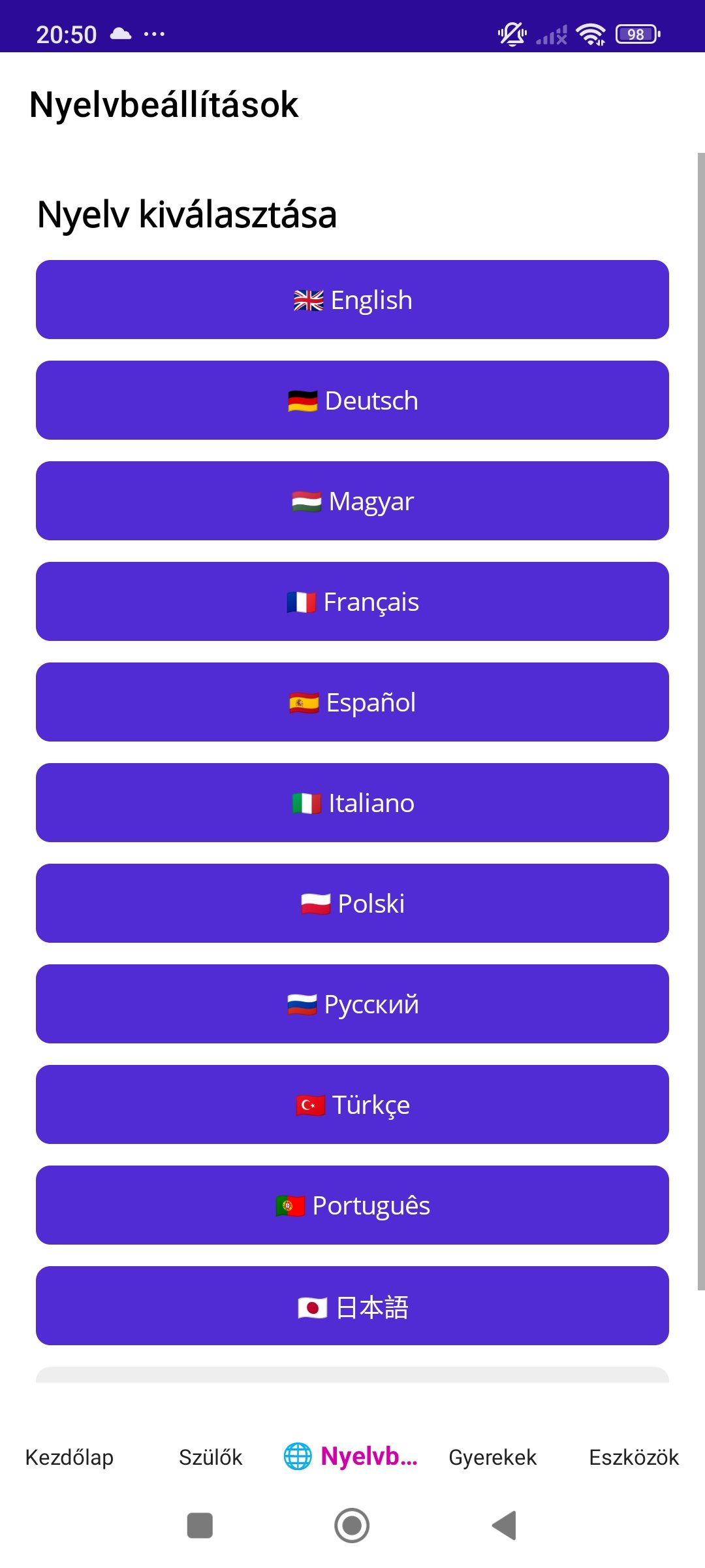 A kívánt nyelvet egyszerűen kiválaszthatod a nyelvmenüben.