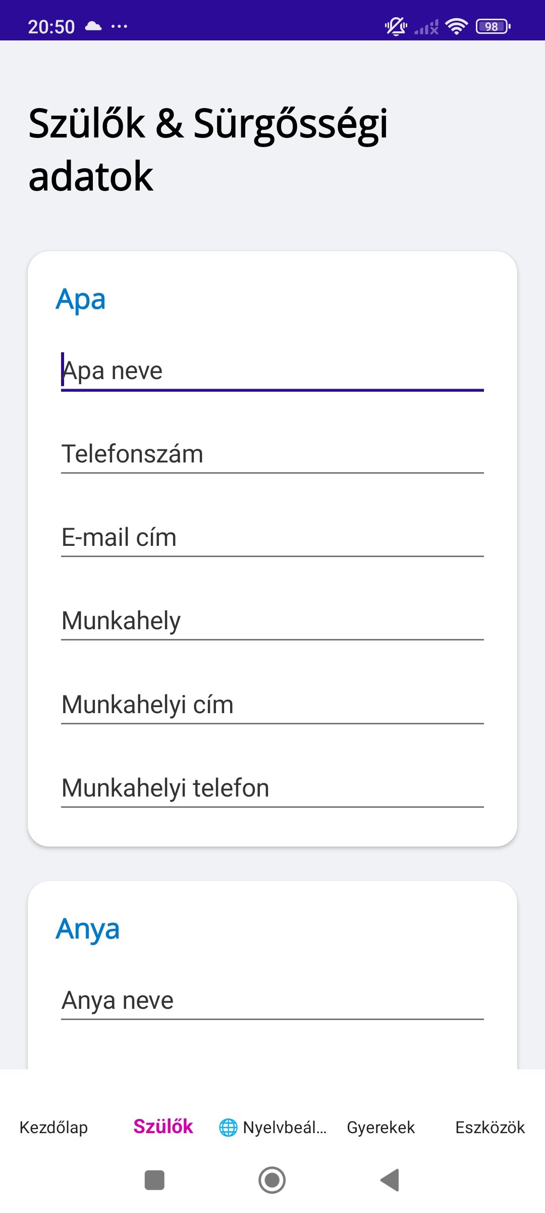 Az alkalmazással nyomon követheted a gyerekek napi rutinját, egészségügyi adatait, allergiáit és vészhelyzeti kapcsolatait.