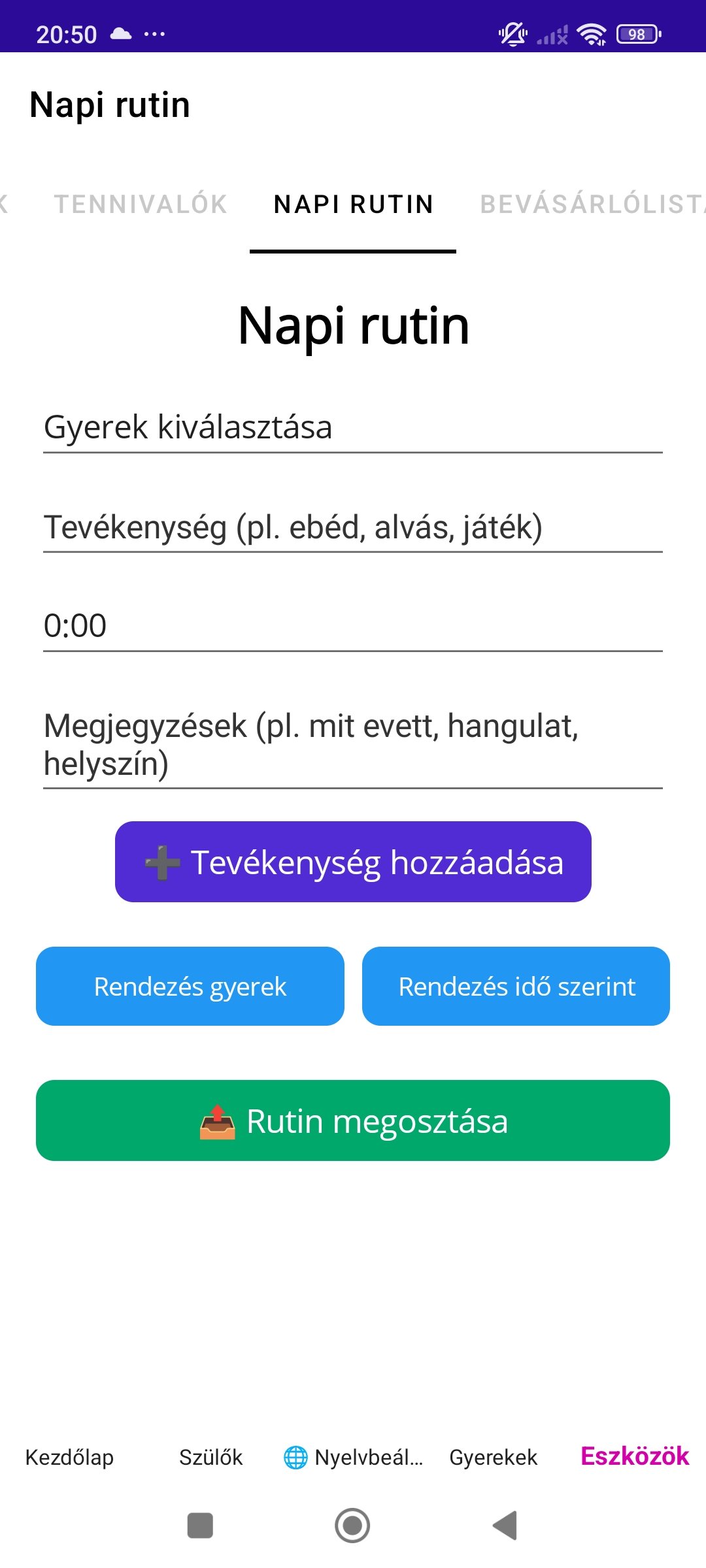 ⏰ Napi tervező – Könnyedén megtervezheted a gyerekek napi programját.
