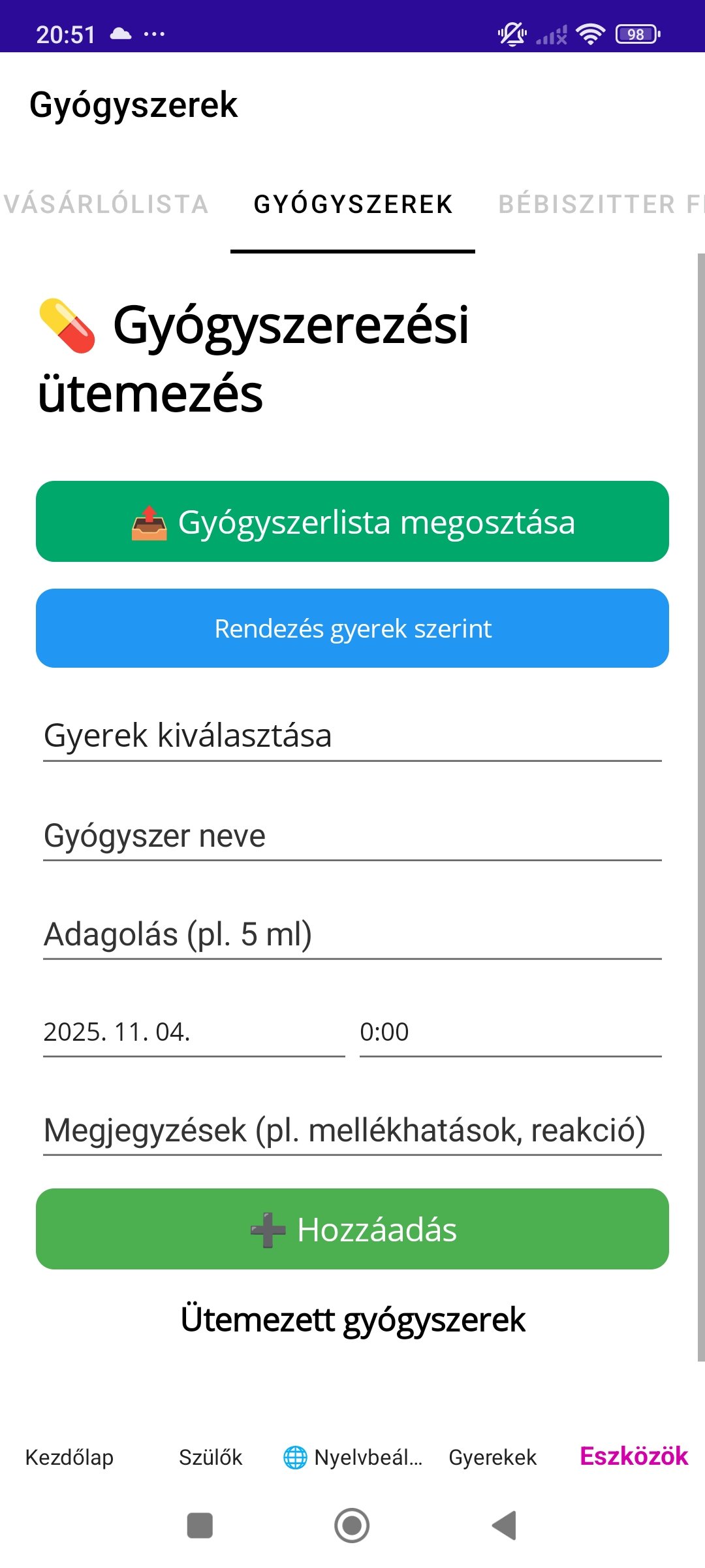 🔗 Megosztás babysitterekkel – Oszd meg a gyermek adatait, napi beosztást vagy bevásárlólistát egy pillanat alatt.