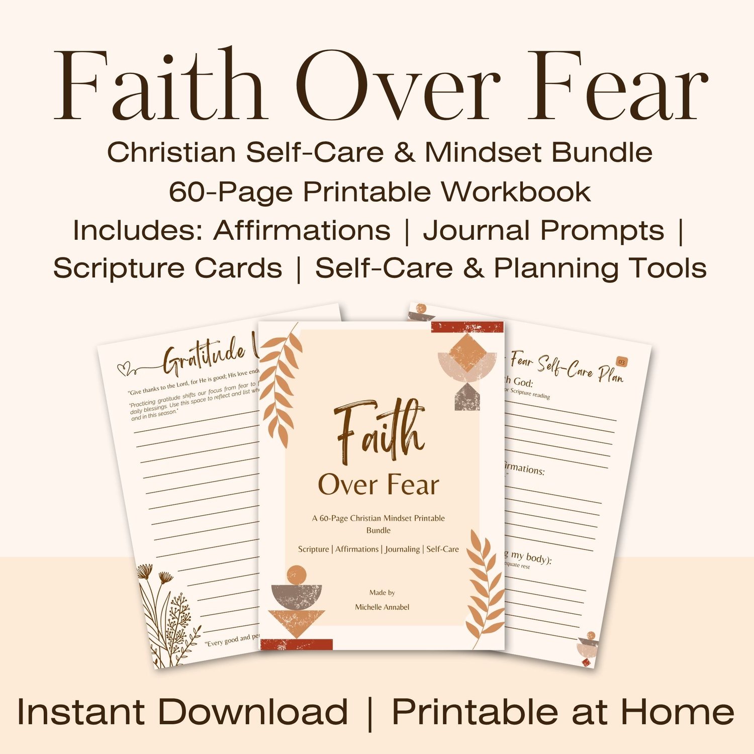 Faith Over Fear is a 60-Page Christian Mindset Workbook. If you've felt anxious, fearful, or stuck in your mind, this collection is designed for you. I created it with love and prayer, understanding the burden of feeling weighed down, but God invites us to walk in faith, not fear.