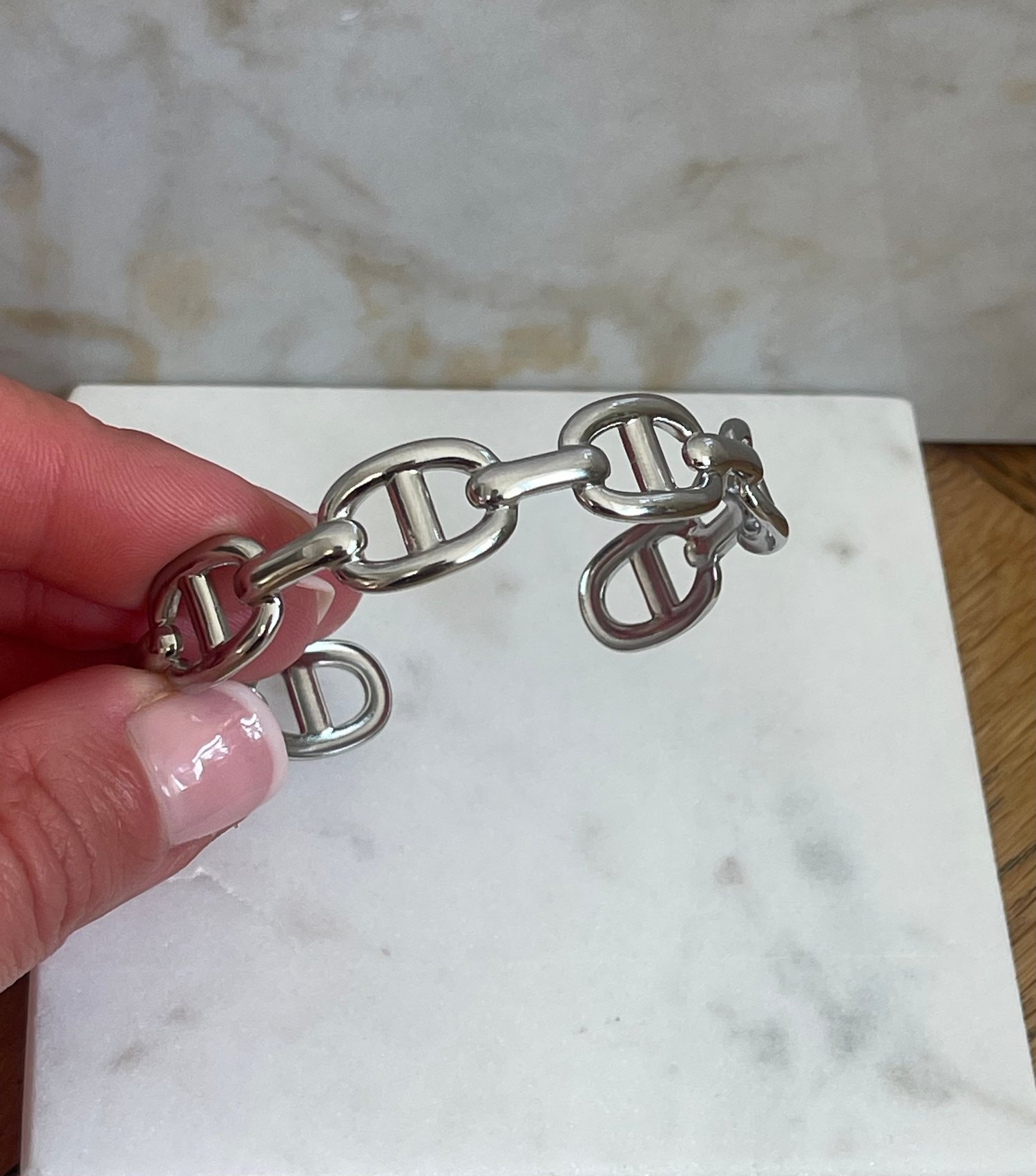 Ses maillons ovales ajourés apportent du caractère et une allure affirmée au poignet.