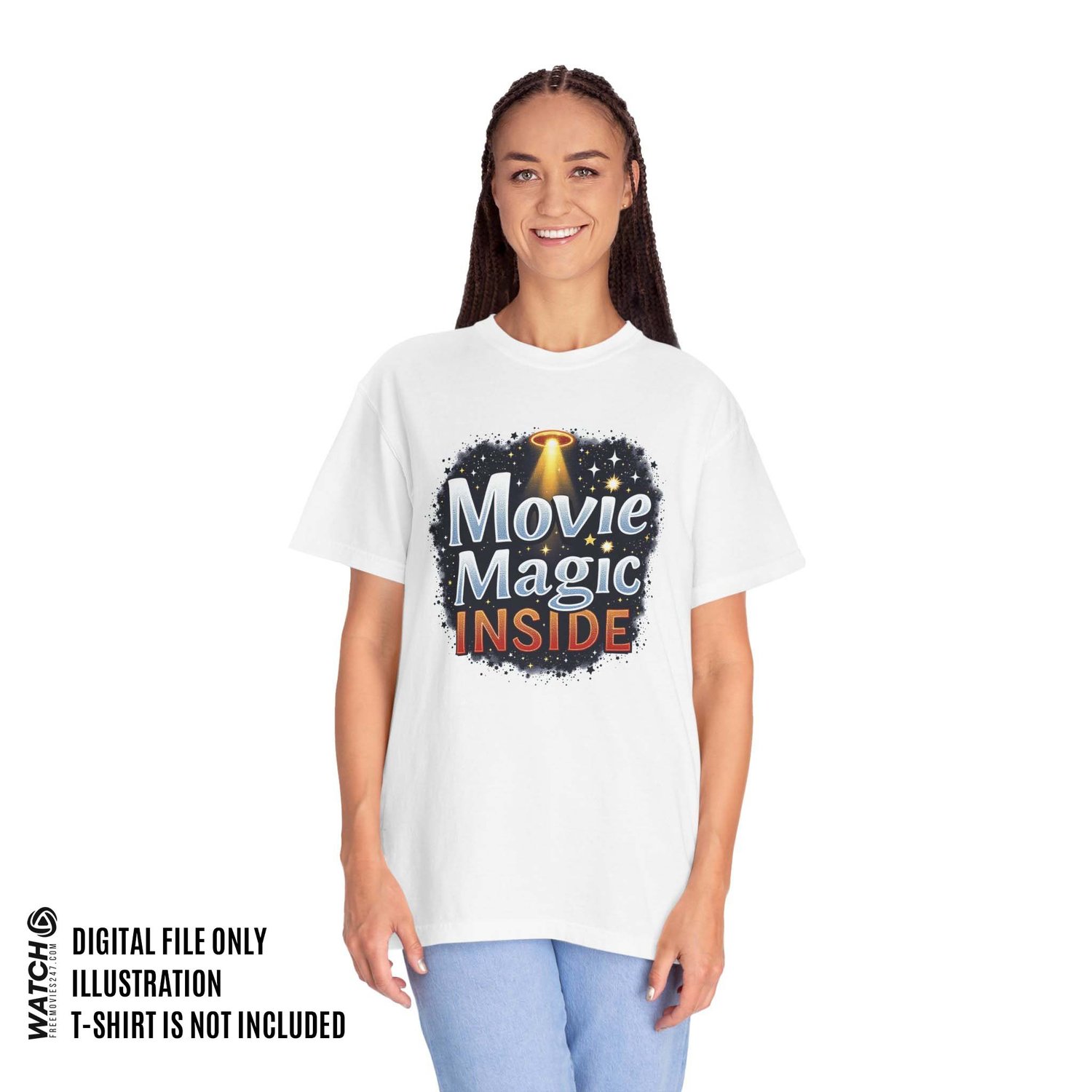 This unique "Movie Magic Inside" design is a perfect tribute to cinema lovers! With its stunning visual style, this high-resolution digital download captures the essence of movie magic. Whether you're using it for t-shirts, posters, or other products, this eye-catching design will make any item stand out with its cinematic charm. Get this exclusive digital file to print your own movie-inspired creations!