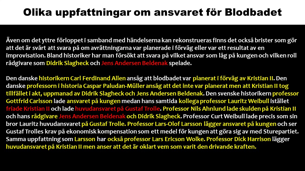 Ansvaret för Stockholms Blodbad 1520 en mycket komplex fråga.