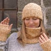 A UNIQUE and lovely accessory set of hat, cowl, and fingerless gloves. Now also including the ear warmer.