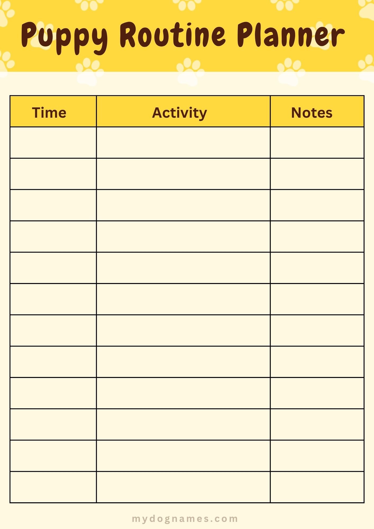• Puppy Routine Planner