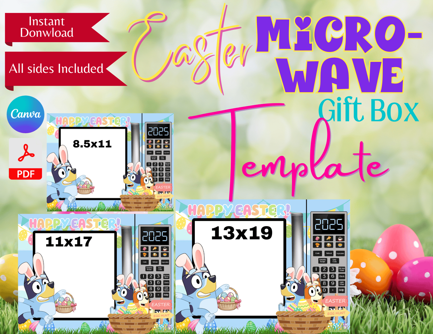 Make your Easter celebrations extra special with this adorable Easter Microwave Gift Box Template. Perfect for DIY gifts, party favors, and holiday treats, this fun and vibrant design features a festive Easter theme with a familiar gaming character, colorful eggs, and a playful spring background.