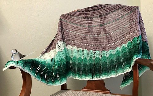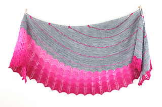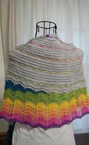 Short Rows is mostly garter and stockinette with a few slipped stitches for the first half of the shawl. Then it’s down to business where the gradient really begins, with simple short rows, lots of color and a non-threatening chevron lace repeat.