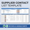Supplier Contact List Spreadsheet with Contact Finder – Excel & Google Sheets Template