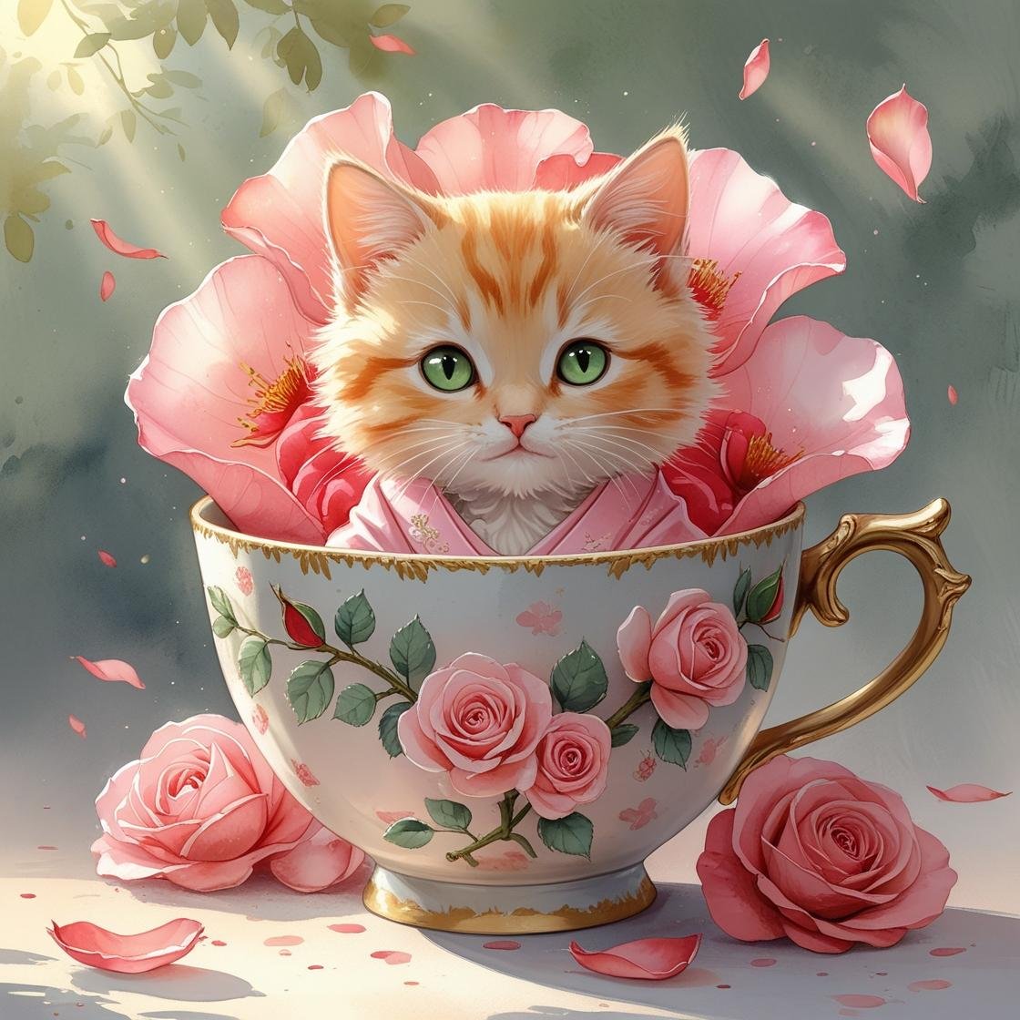 June Meowmoji – Rose Cat-in-Cup Collection (Printable Set)