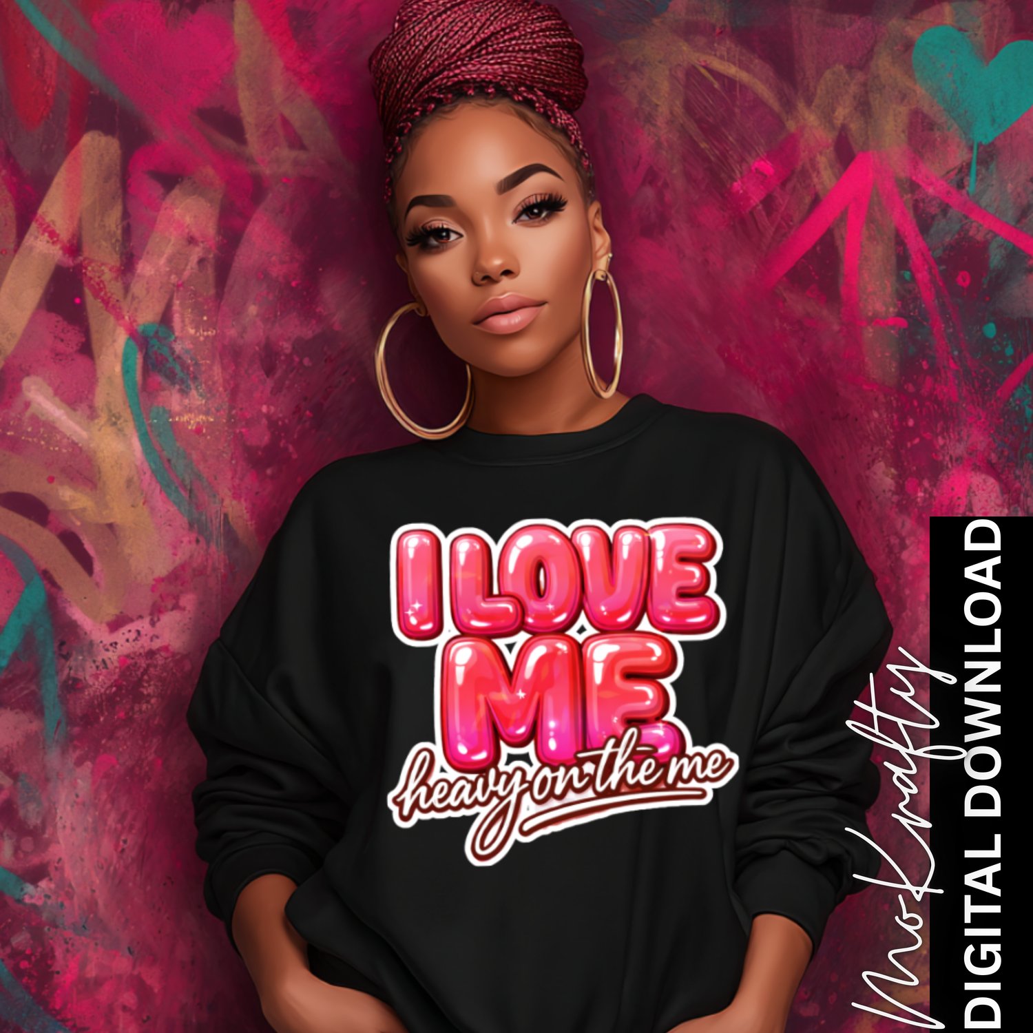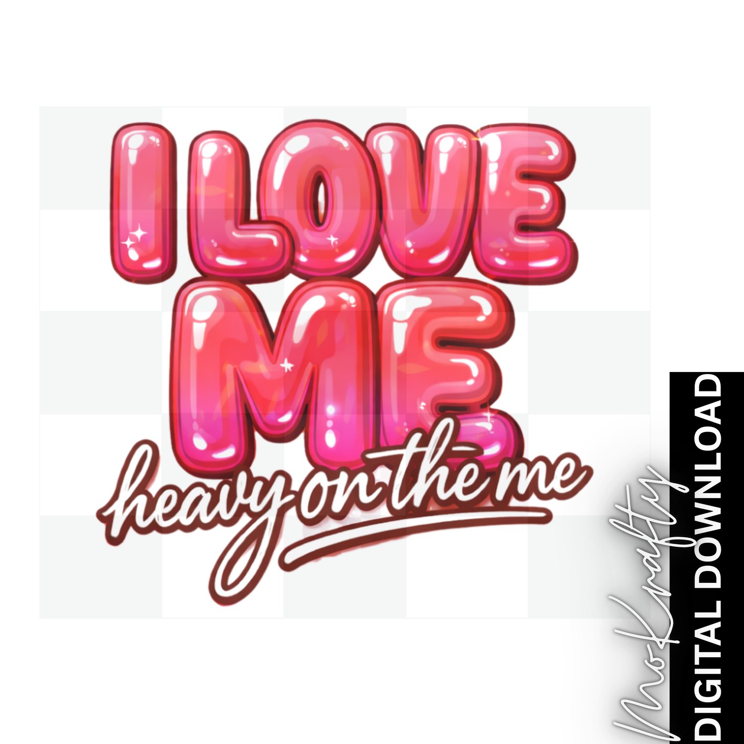 I Love Me Heavy On The Me PNG, Bold Self Love Quote Shirt Design, Retro Bubble Letters – Instant Digital Download