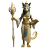 - An Egyptian-inspired cat deity figure holding a ceremonial staff, featuring detailed hieroglyphic-style designs and ornaments.