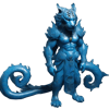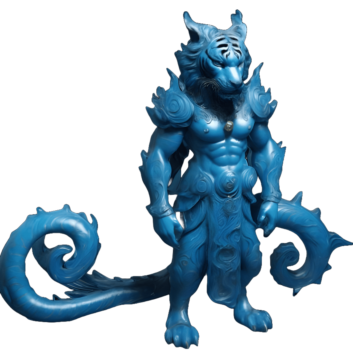 - A muscular anthropomorphic blue tiger warrior with detailed armor and mystical swirl patterns.
