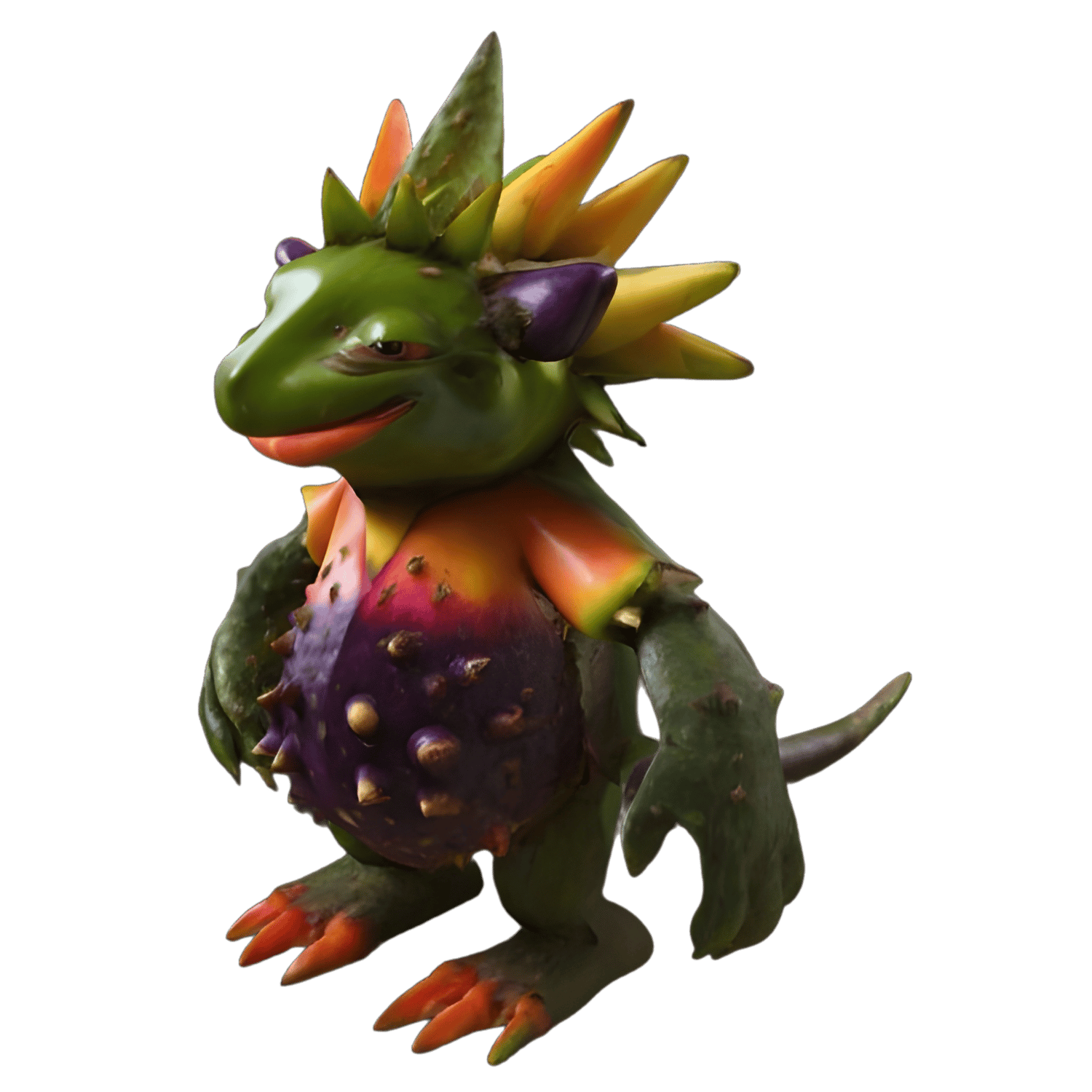 - A colorful dragon-like creature with spiky features and vibrant purple and green coloring.
