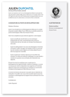 Le modèle de CV Développeur Web Junior est un modèle qui marche très bien auprès des recruteurs avec une présentation claire des rubriques ainsi que des compétences en informatique. Ce CV moderne et original vous permettra de sortir du lot et de vous démarquer des autres candidats. Simple à utiliser, prérempli et facile à personnaliser afin de vous aider à rédiger votre CV rapidement.