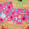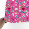An anti-valentine conversation heart candy pattern, on hot pink.