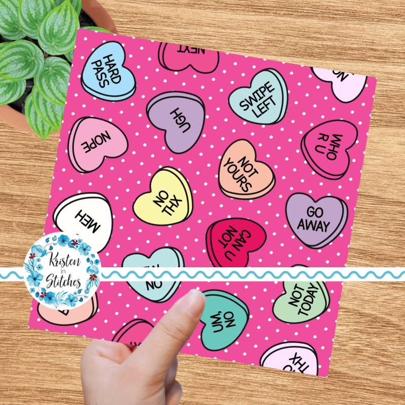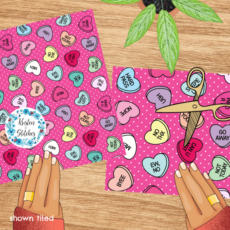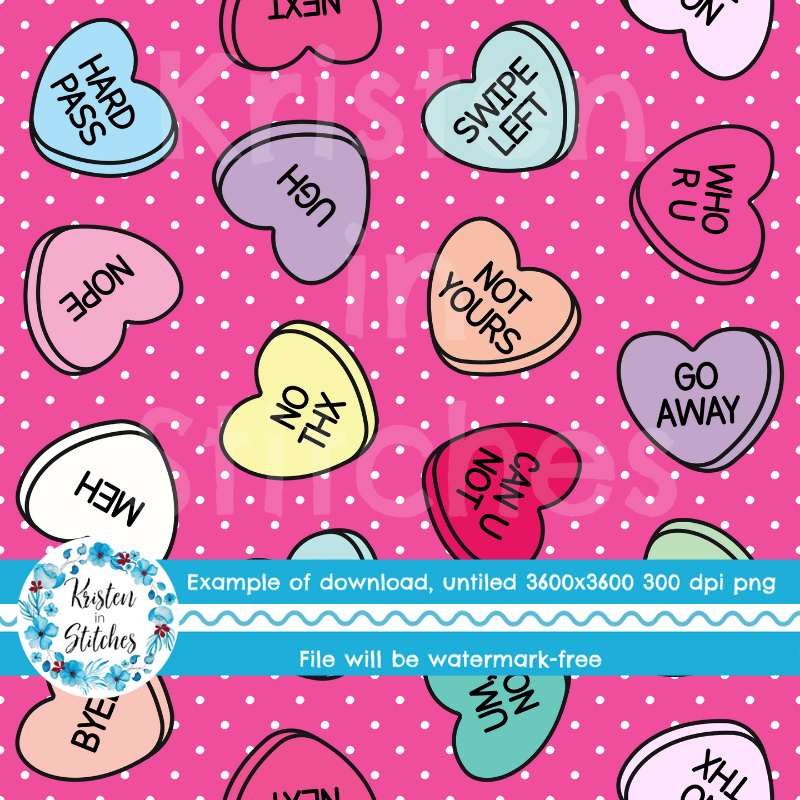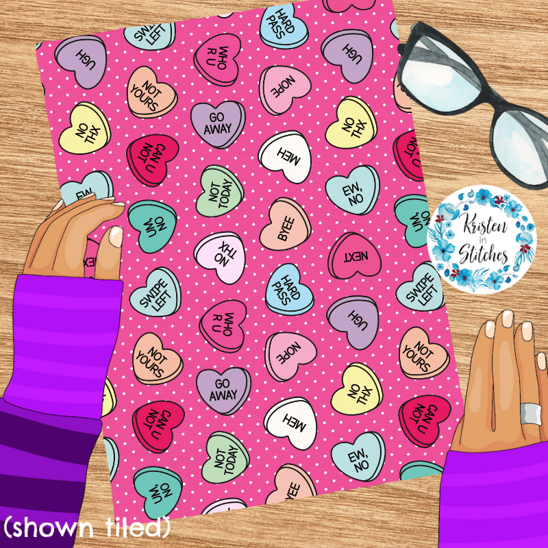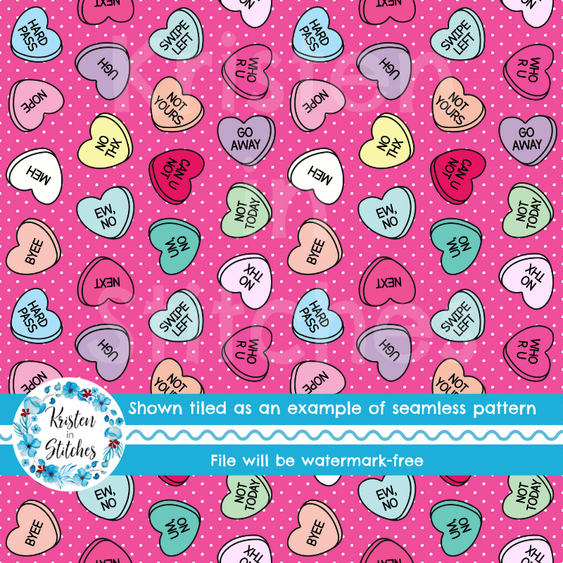 Sassy Anti-Valentine Seamless Pattern, Conversation Heart Candy