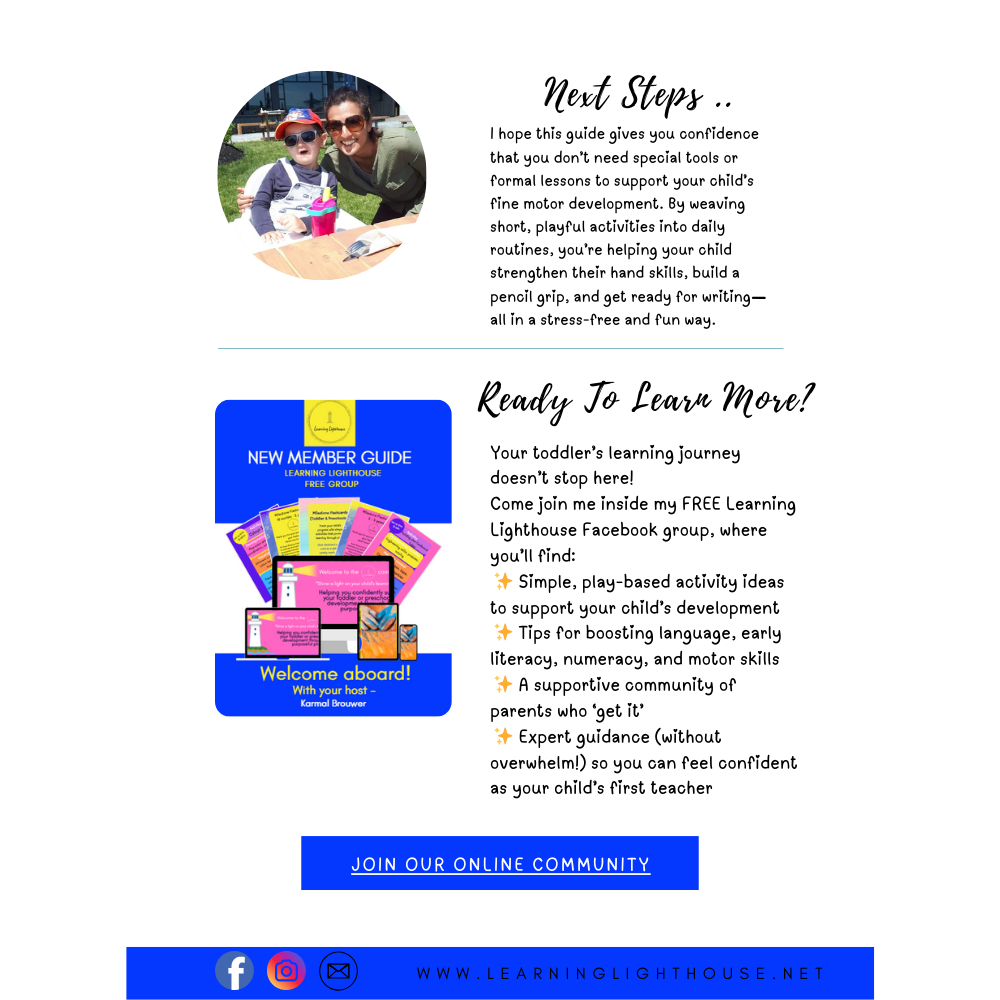 Join my free newsletter, where I share simple, practical tips for creating engaging activities at home. I’ll walk you through the how and why behind each activity, so you’ll always know the developmental benefits for your little one. No more guesswork - just confident, purposeful play.