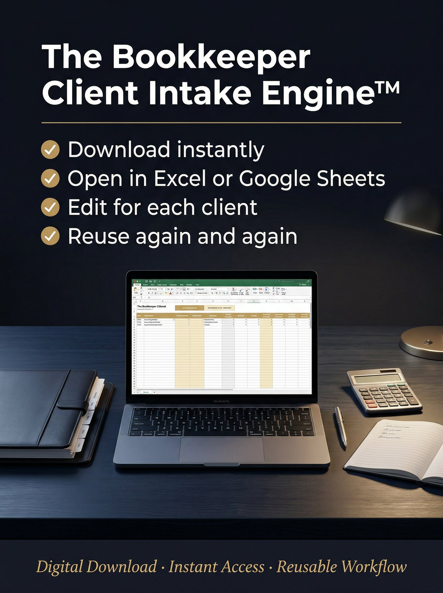 Run a cleaner, faster, and more professional client onboarding process with The Bookkeeper Client Intake Engine™.