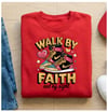 The “Walk By Faith, Not By Sight” tee brings together bold street style and powerful scripture in one statement piece. Featuring vibrant sneaker artwork, playful heart accents, and eye-catching typography, this design is perfect for believers who love fashion and faith.
