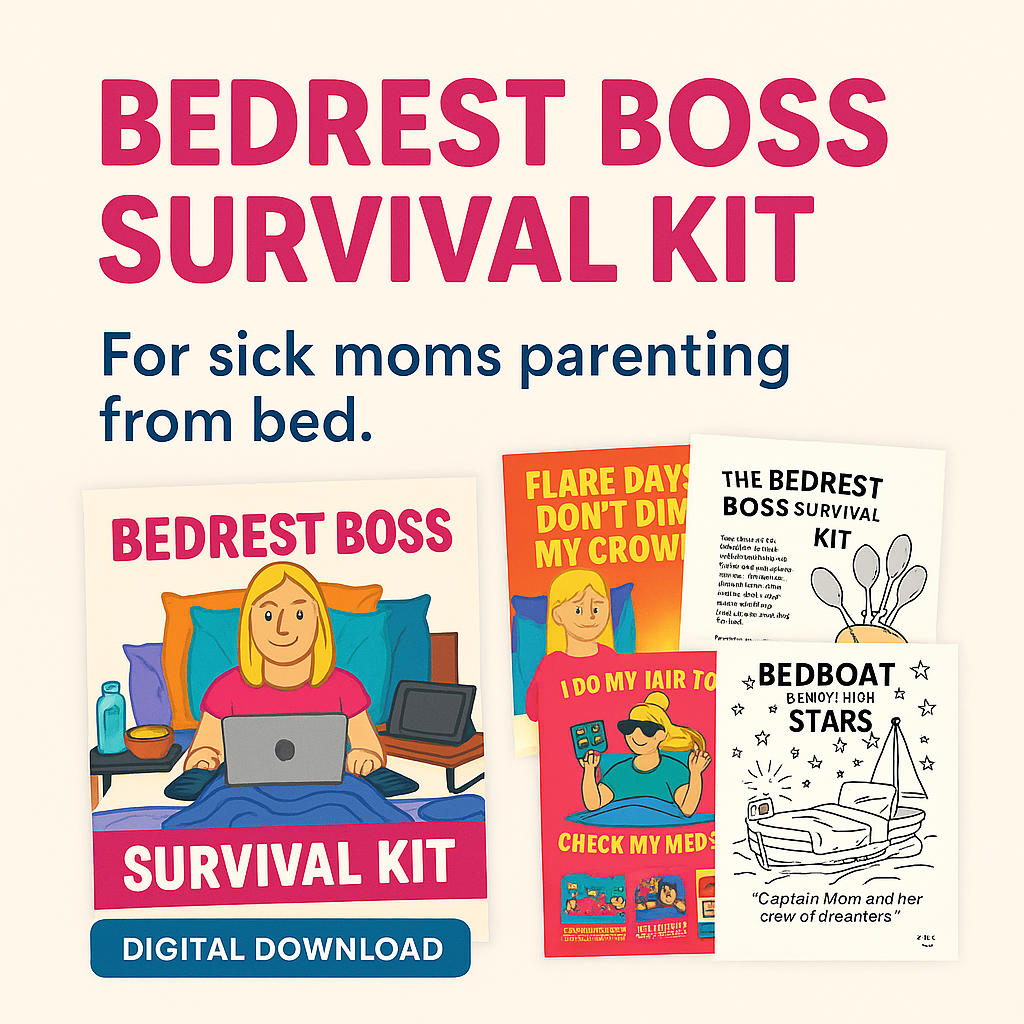 Parenting while sick, exhausted, or managing chronic illness isn’t for the faint of heart. The Bedrest Boss Survival Kit was created by Jillian Kaplan — mom, writer, lawyer, and autoimmune warrior — who knows what it’s like to parent from bed and still hold it all together (mostly).
