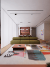 - Patterned rugs introducing rhythm and playful energy