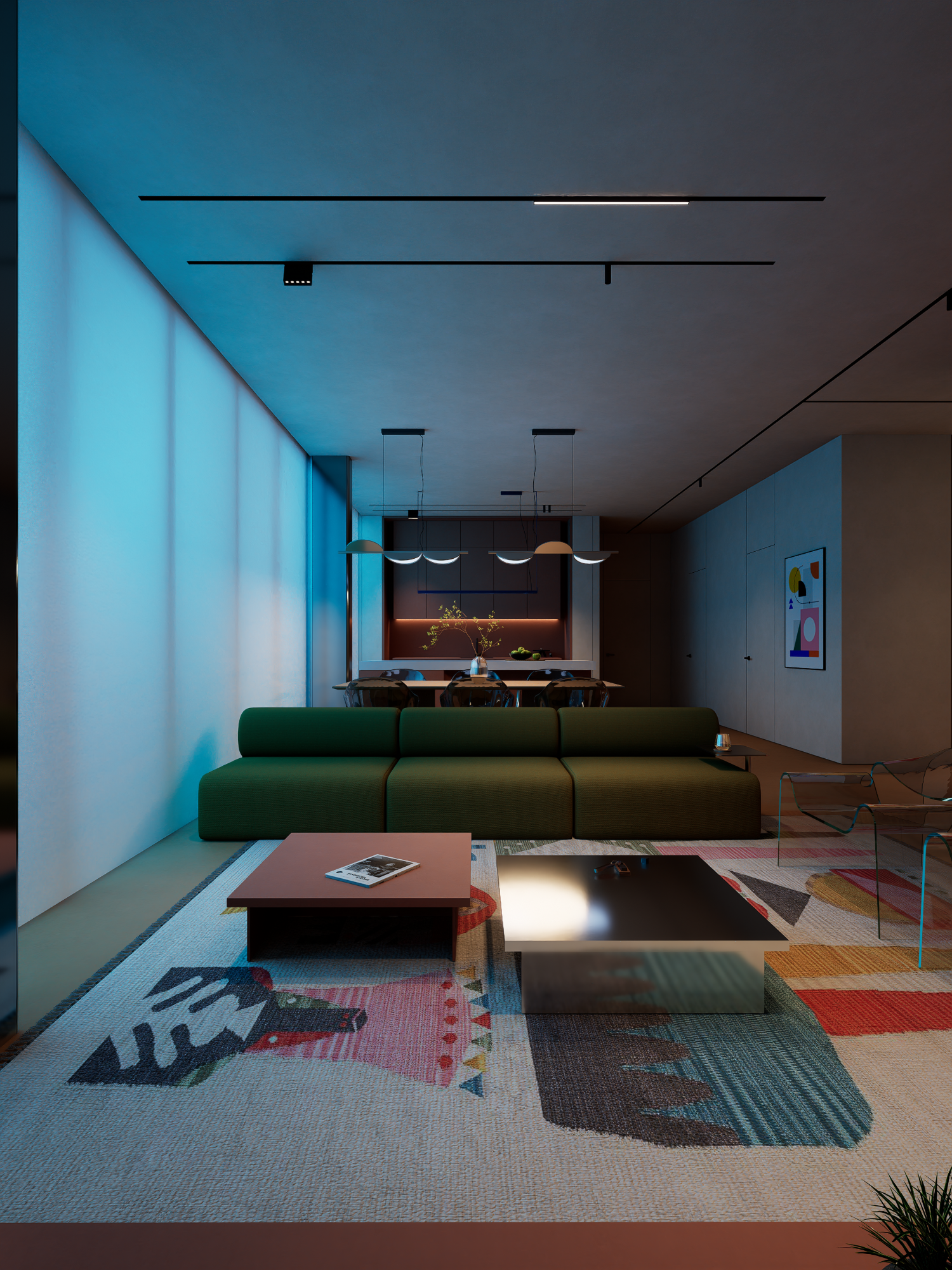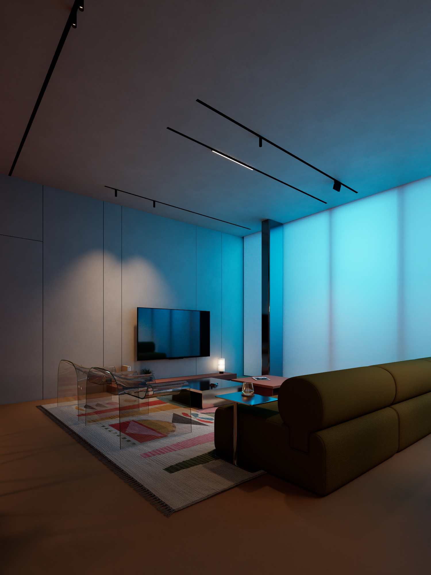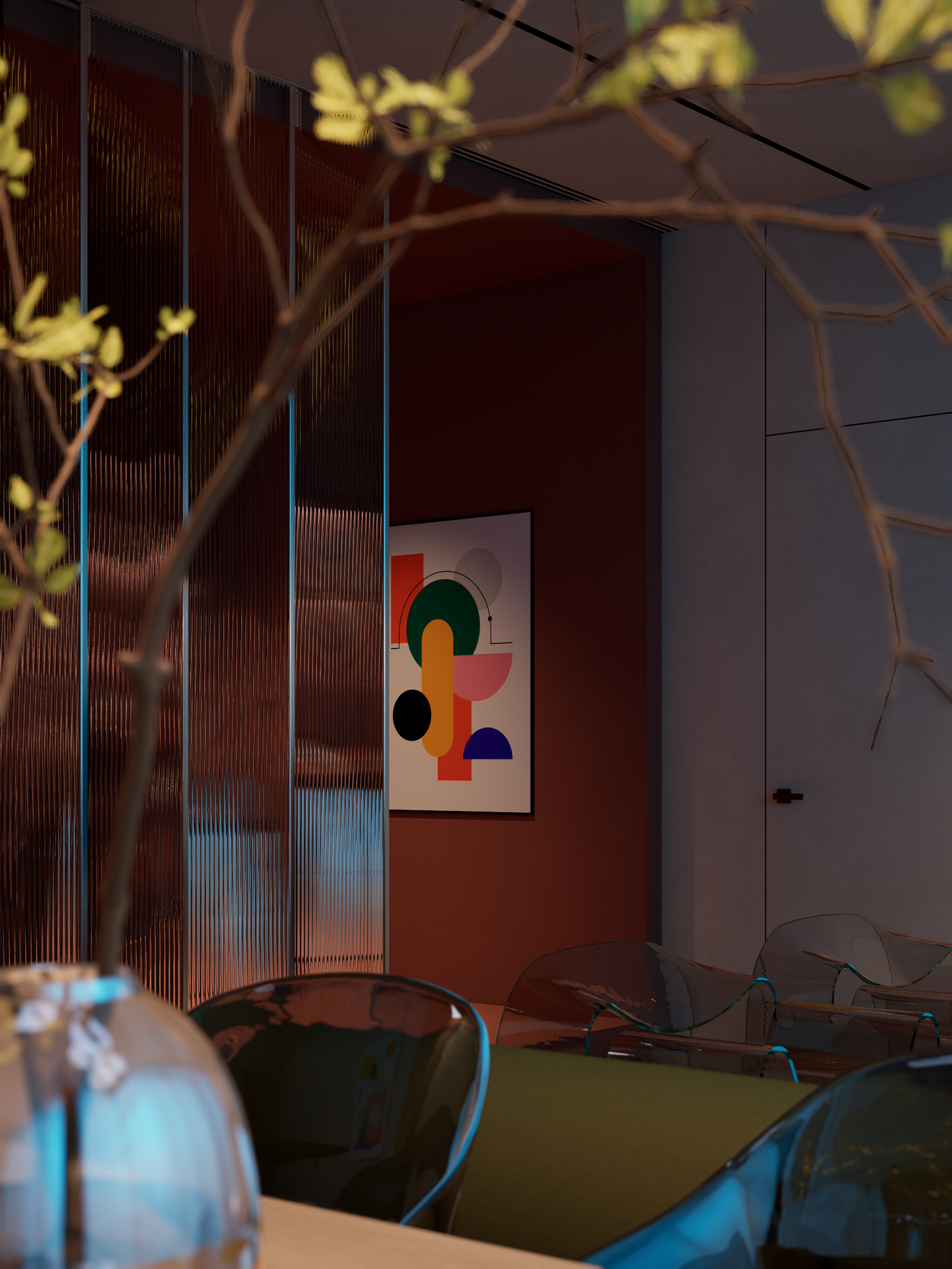 - Transparent seating that keeps the room airy and modern