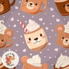 Bear Cocoa Hearts Seamless Pattern – Cute Valentine Bear Mug Digital Paper