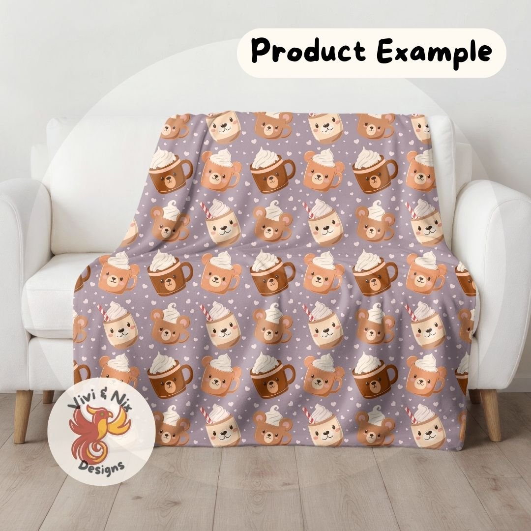 This Bear Cocoa Hearts Seamless Pattern features sweet bear-shaped mugs filled with whipped cream cocoa, surrounded by tiny hearts on a soft lavender background. Designed to feel cozy, cute, and versatile for Valentine’s Day and winter projects.