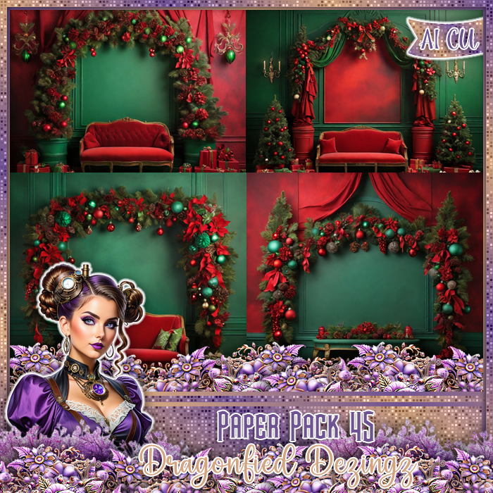 4 FS Red & Green Christmas themed scenic papers.