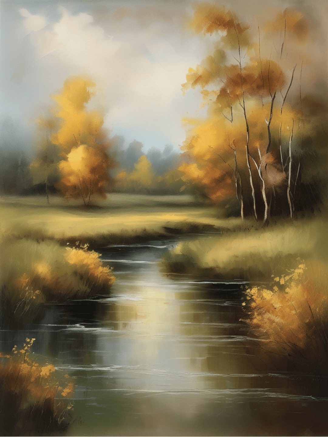 Printable Wall Art, Vintage Landscape, Farmhouse Wall Decorations, Landscape Oil Painting