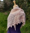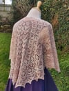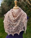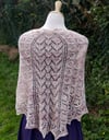 Add a beautiful touch to your outfit with this intricate-looking, shimmering lace shawl worked from the top down.