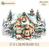 Whimsical Bunny Cottage Christmas Design Set - 6 Textless Festive Illustrations