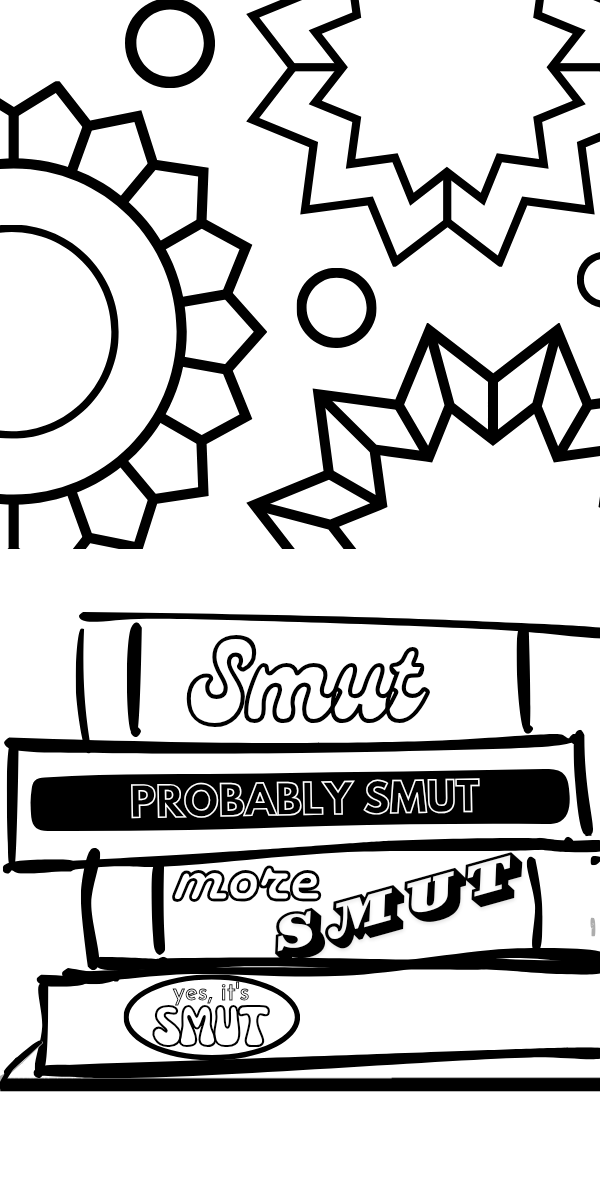 Double-sided print at home coloring "Yes, its smut" bookmark