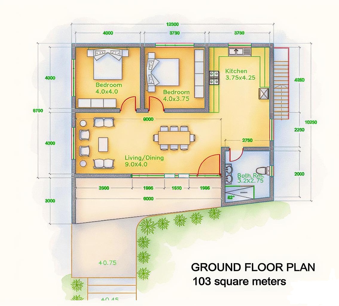 Vacation Home Design — 2-Bedroom Sustainable Retreat with Open-Plan Living (103 m²)