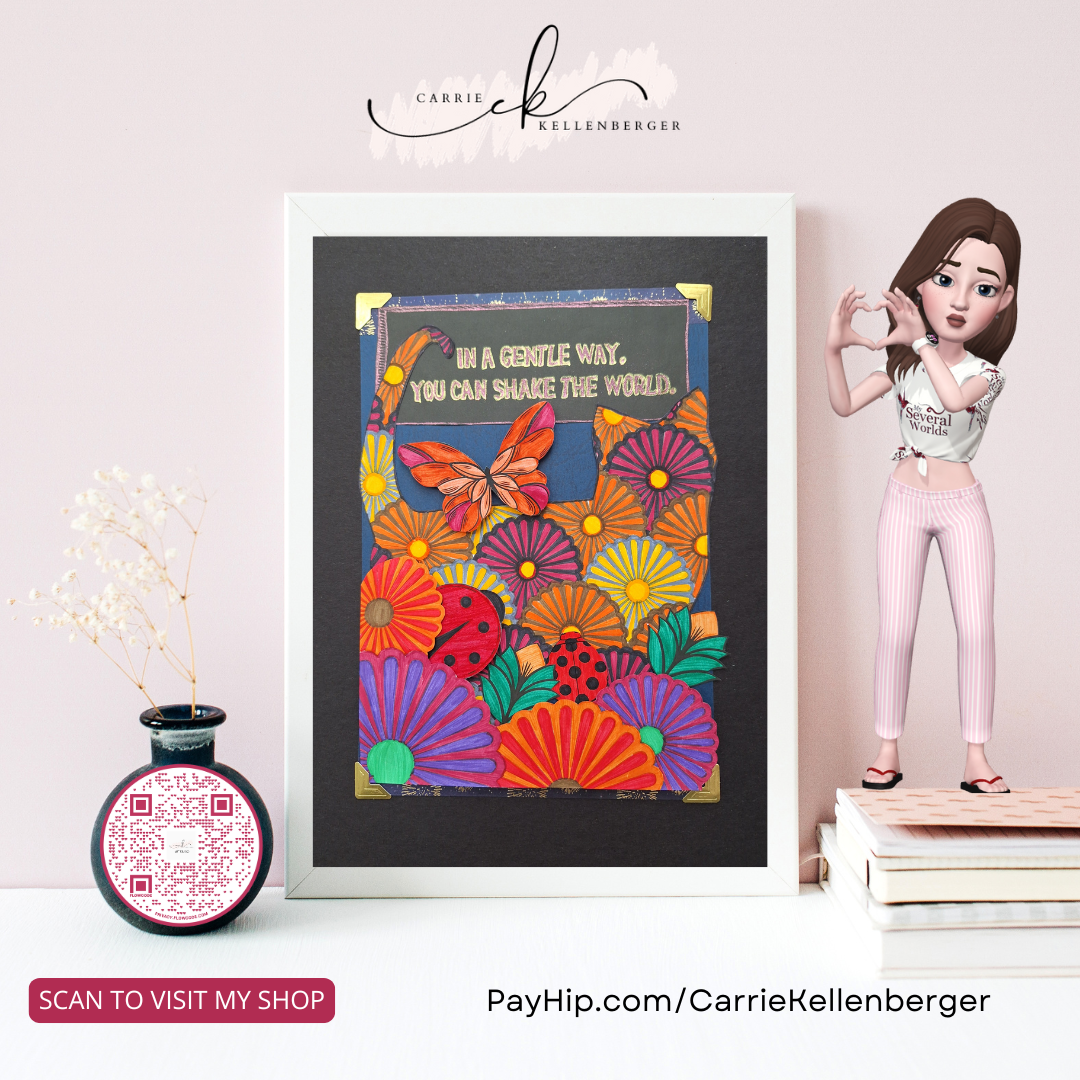My paper cutting technique adds an extra 3D dimension of beauty and intricacy to each design, making my collages a delightful keepsake.They’re meant to brighten any space: an office cubby, a senior’s bedside, a child’s room, a sunny kitchen, or anywhere your heart desires.