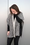 Semantics is the study of meanings. It felt like the perfect name for this design in marled yarns. The piece is equal parts poncho, cardigan, shawl and blanket. This cozy-comfy knit features 2 colors of fingering weight yarn marled together with trim in 1 of the colors held double. This project would be a great one to use up scraps as well! Throughout the design process, I discovered this shaped piece does, in fact, have its own name: it’s a ruana, but SEMANTICS still makes sense to me for this easy-fit design. This size-inclusive piece has 16 possible sizes based on the wearer’s unique size and style preferences.
