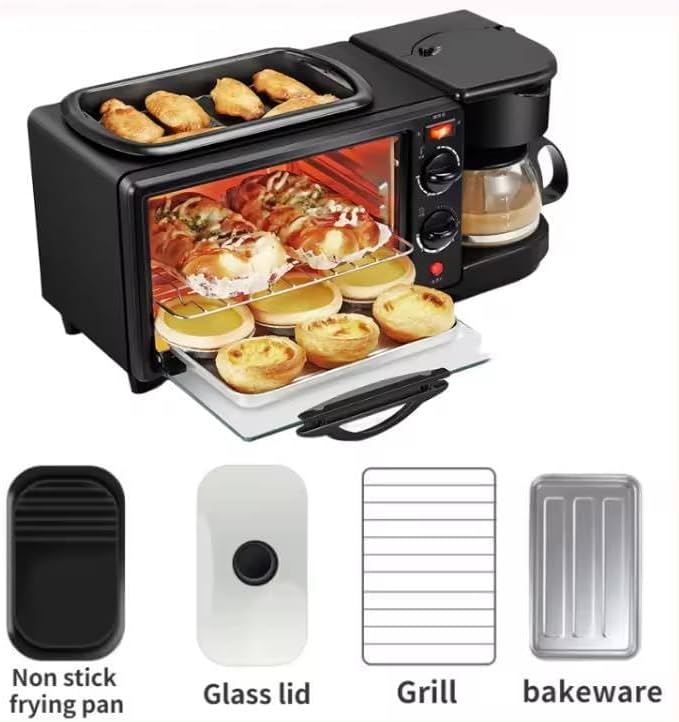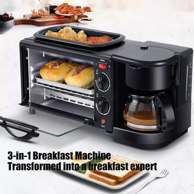 3-in-1 Breakfast Station, Electric Coffee Maker and Oven Combination, Multifunctional Kitchen Appliance for Home Cooking