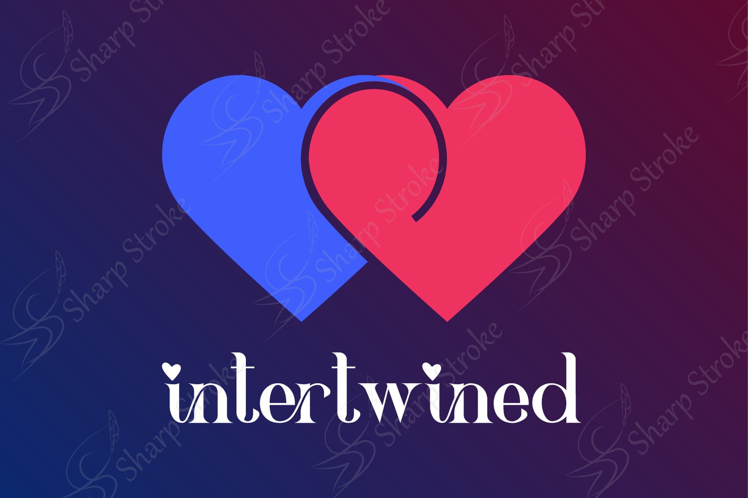 A vibrant, scalable vector illustration of two hearts perfectly intertwined — one in deep blue, the other in striking red — with a modern, romantic vibe.
