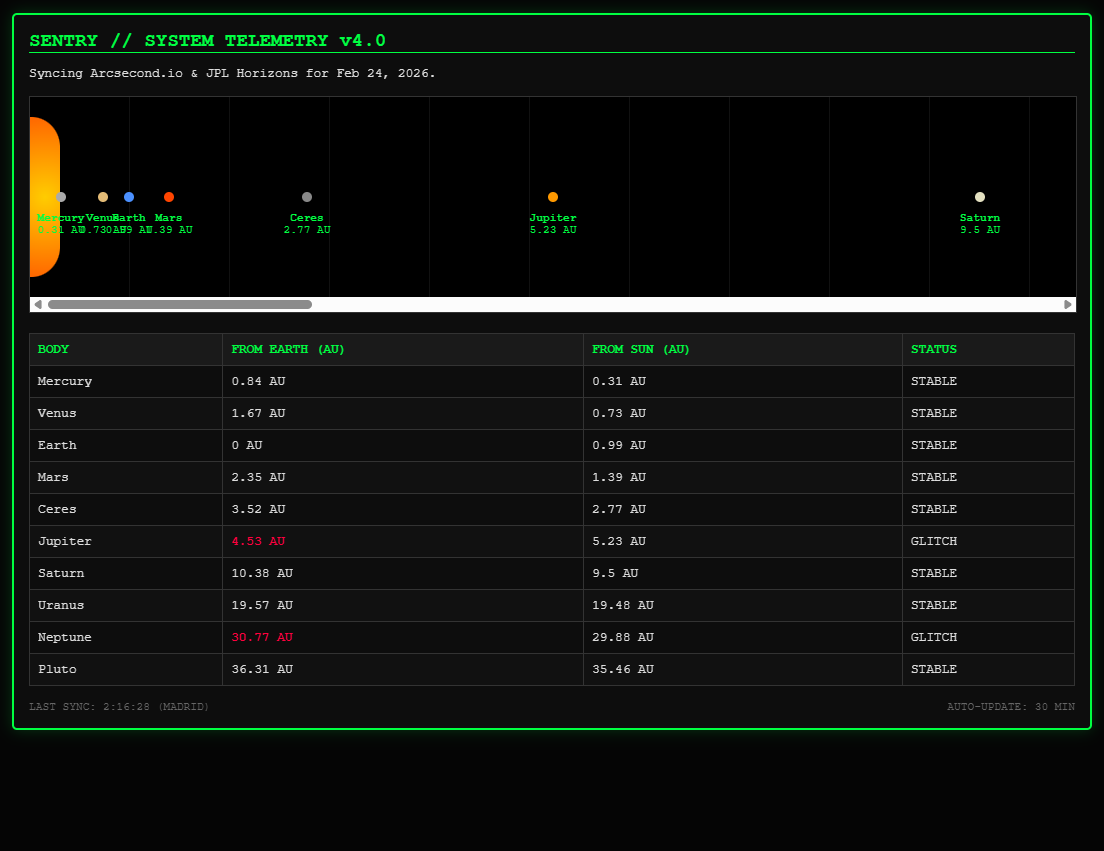 - Data Source: Structured for easy synchronization with NASAβs JPL Horizon API or static data sets.