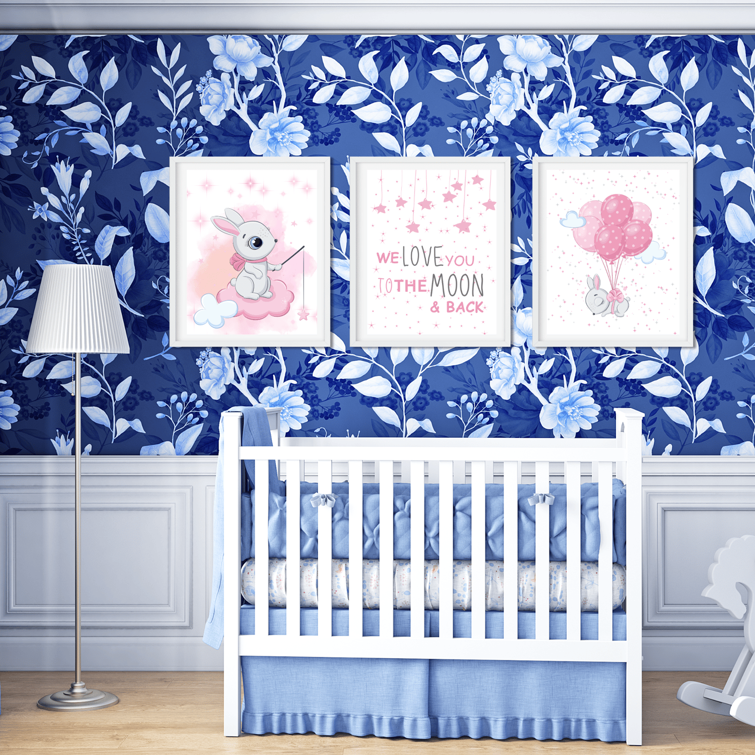 Create a sweet and calming nursery space with this Baby Girl Nursery Wall Art Set of 3.