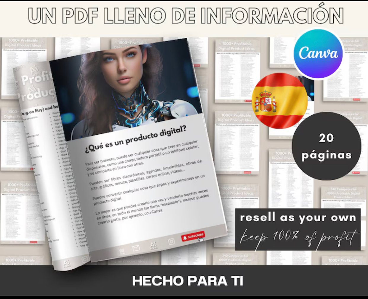 Digital Product Ideas To Sell Online and Make Money Spanish Language