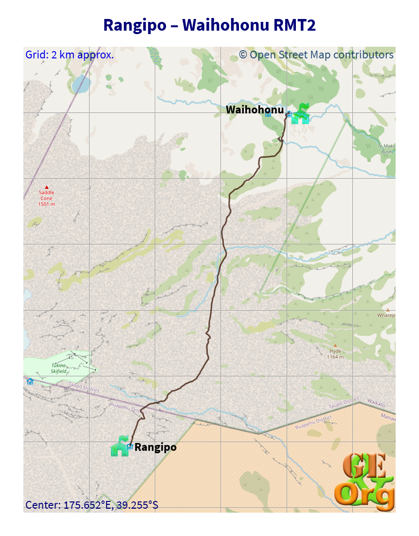 Round the Mountain Track, part 2, Rangipo to Waihohonu, one GPX file, one GeoJSON file, one OpenStreetMap.
